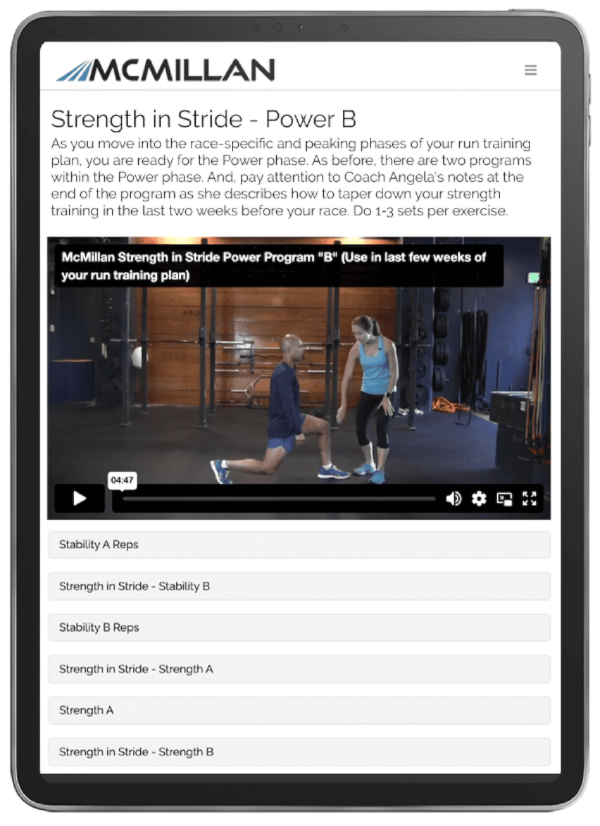 McMillan Training is the ultimate subscription-based run training program that combines the convenience of online tools, strength/mobility routines with access to certified, experienced coaches.
